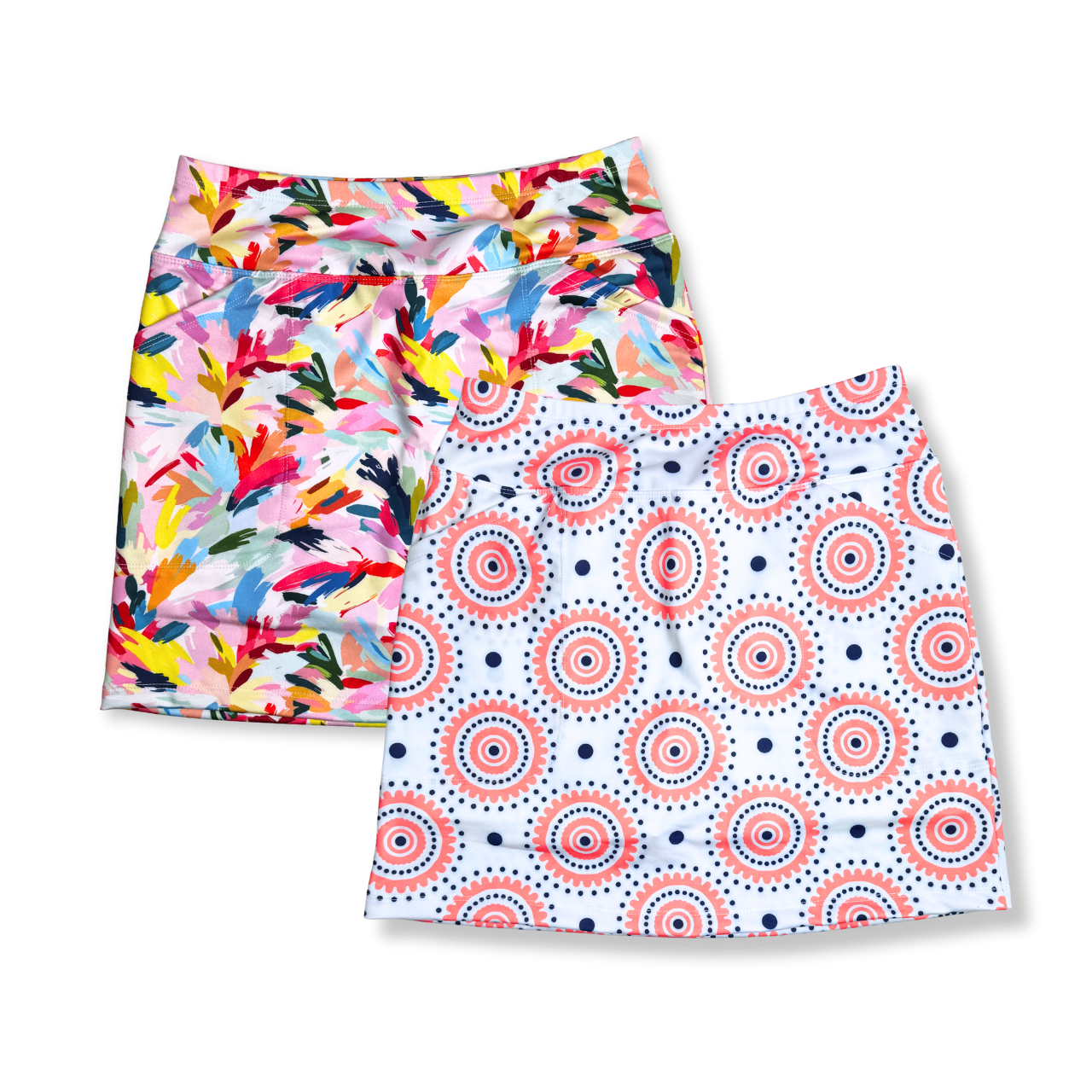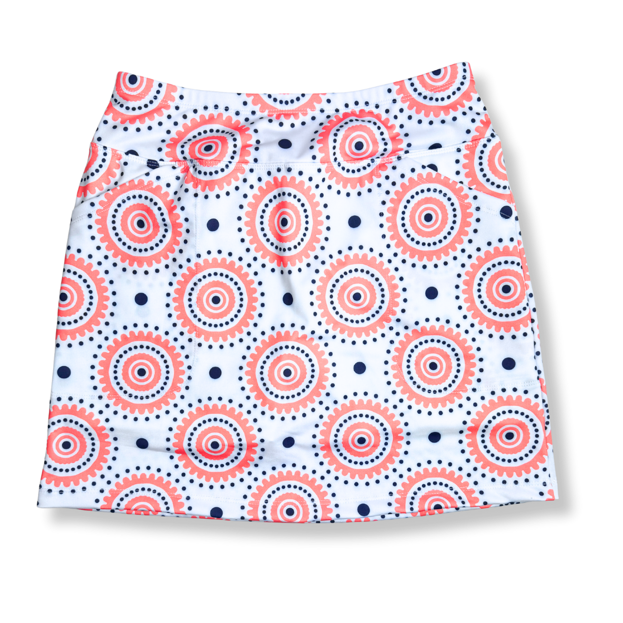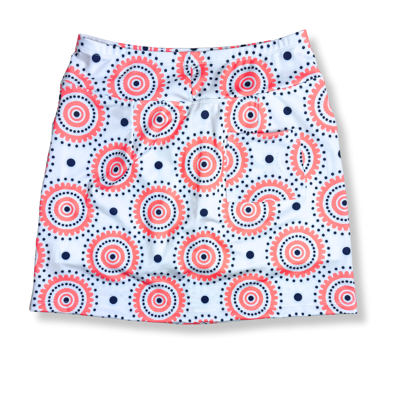 The B-Skinz Gimmie Skort features a fresh peachy-coral and navy dot print that feels timeless yet fun, perfect for adding personality to your on-course look. Designed with a smooth, pull-on waistband and comfortable stretch fabric, this skort moves easily with every swing while keeping its polished shape. Built-in shorts provide confident coverage, and the easy fit makes it a go-to option for both competitive rounds and casual days at the club.