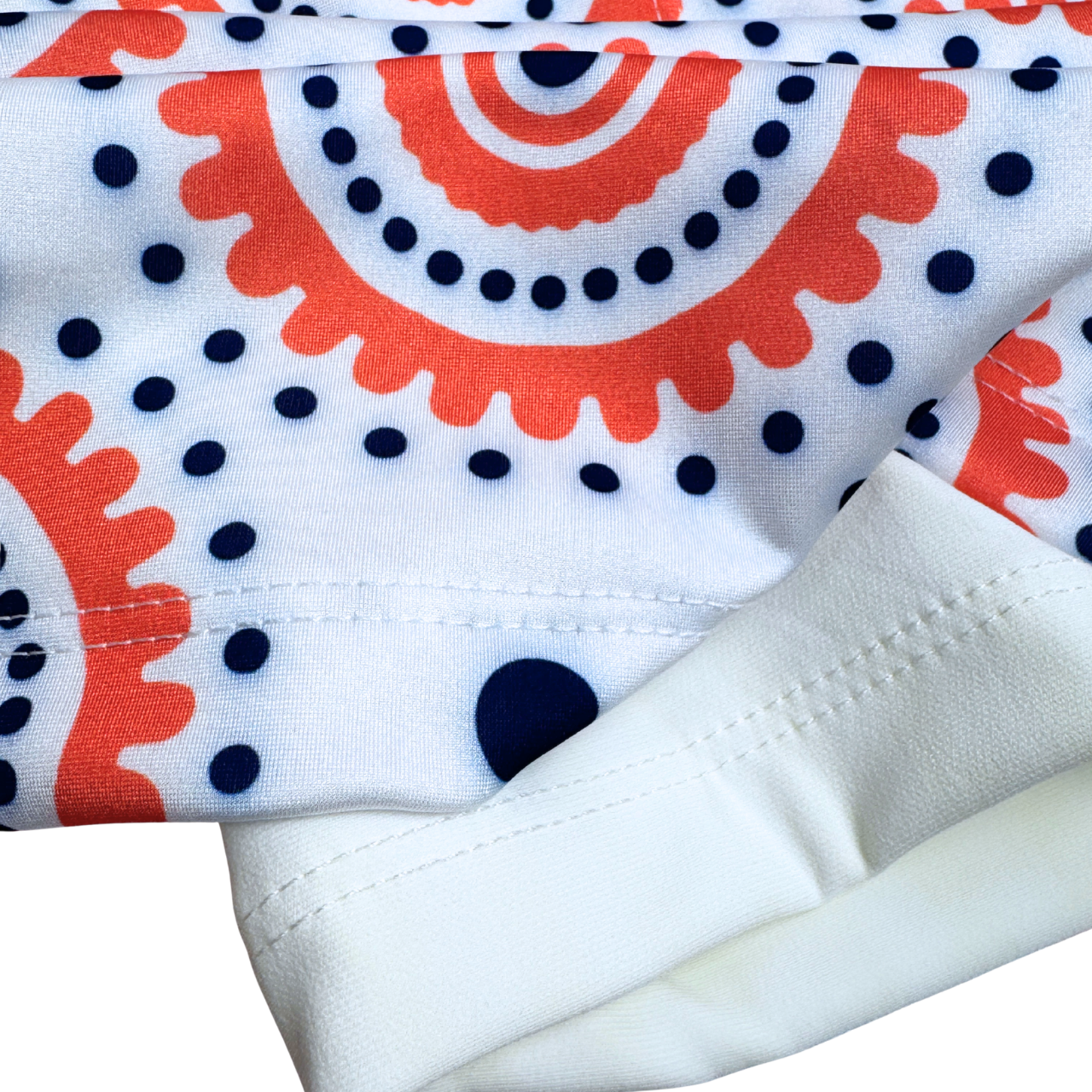 - Refreshing peach and navy dot print
