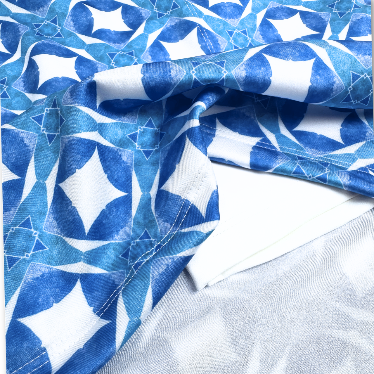 Step into a calmer kind of confidence. The TranquiliTee Skort brings together soft, refreshing blues in a geometric print that feels equal parts serene and standout. It’s the piece you reach for when you want to feel put together without overthinking it. Overall vibe is very cool blues with white, almost tile-inspired, giving it that fresh, coastal feel.