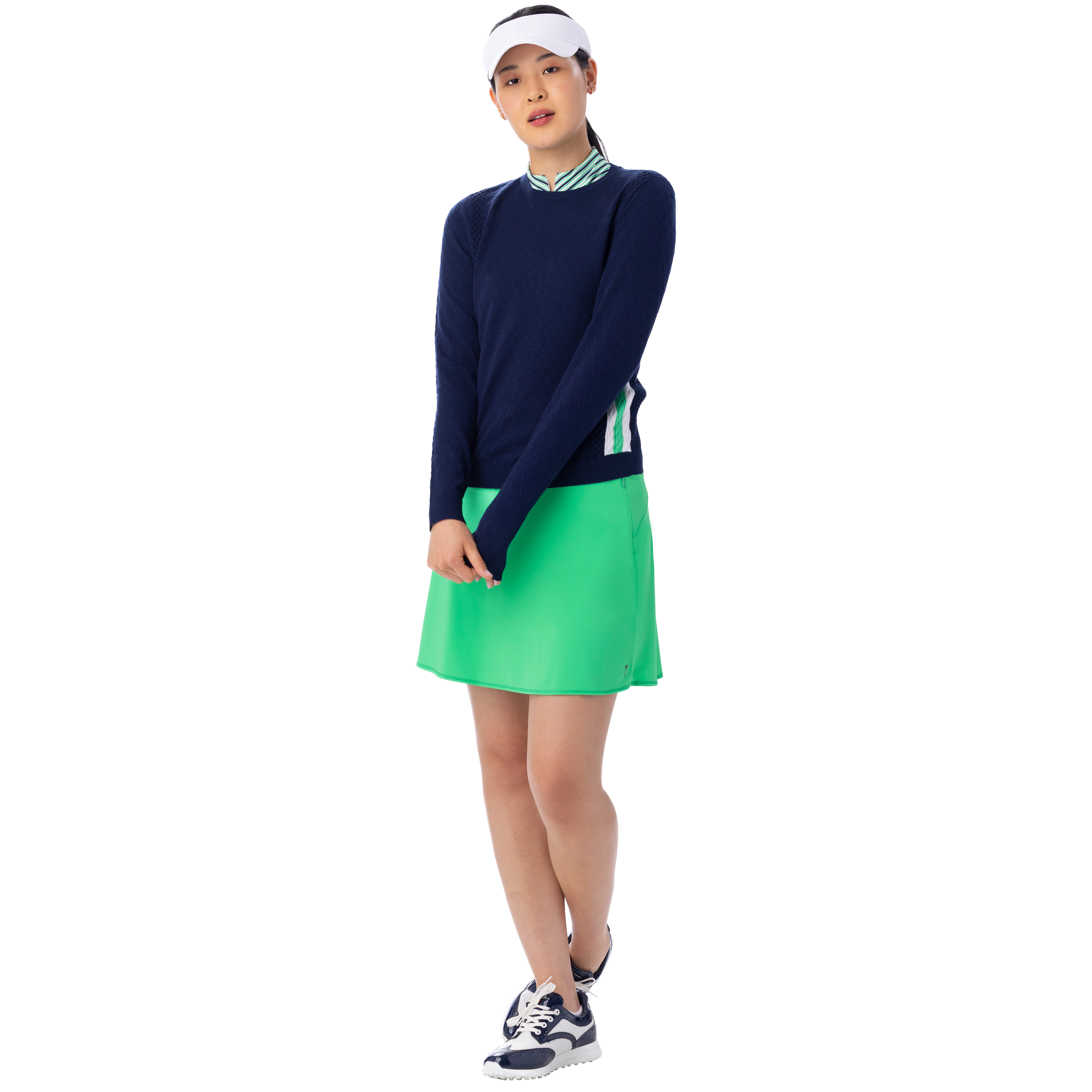 Part of the BK Palm Beach collection, this Kiwi green skort is the kind of piece that instantly elevates your golf outfit. Designed with a fitted waist and a swingy A-line silhouette, it creates a flattering shape that moves beautifully with every step, swing, and stride down the fairway.
