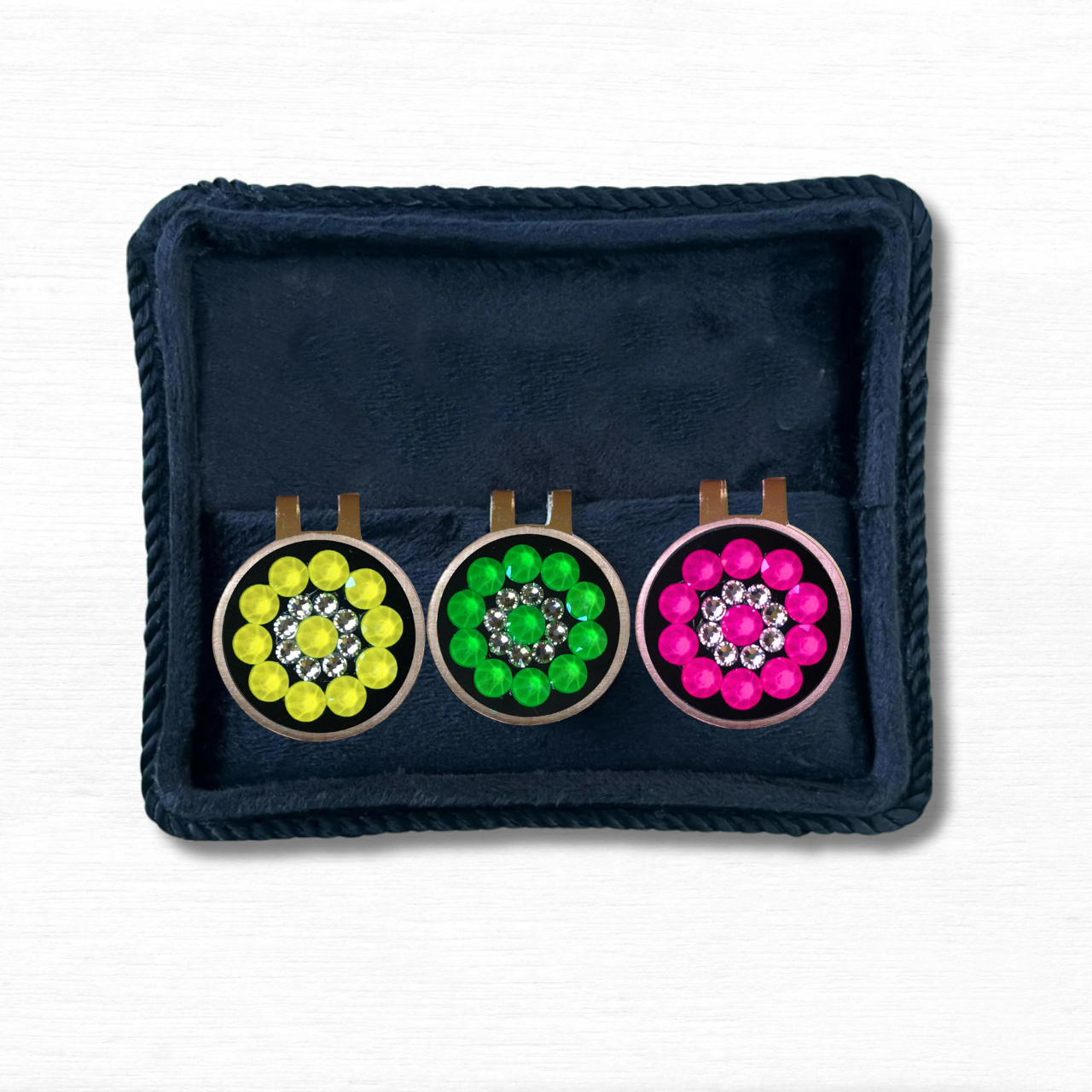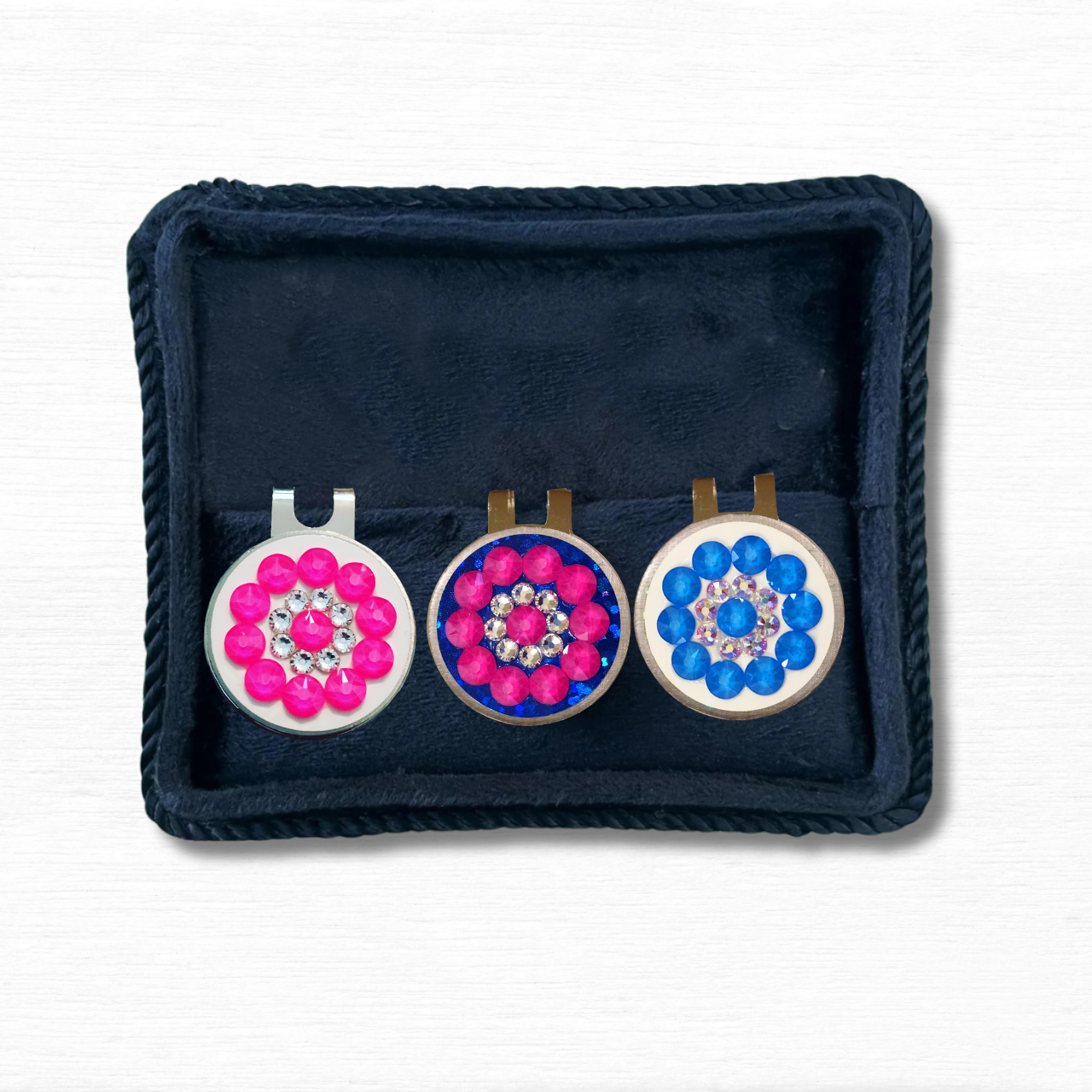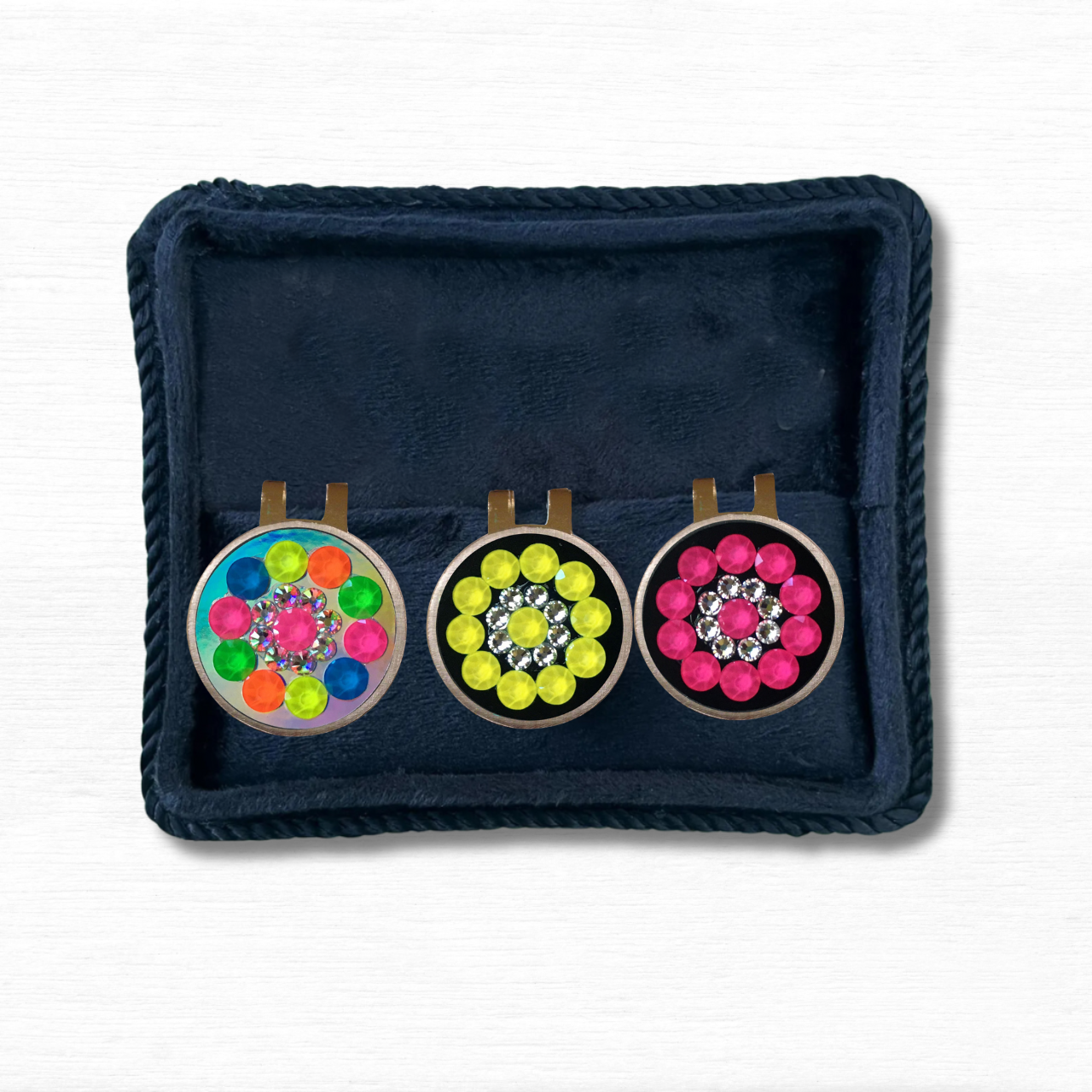 - Three (3) hand-made Blingo Ballmarkers & Magnetic Visor Clips