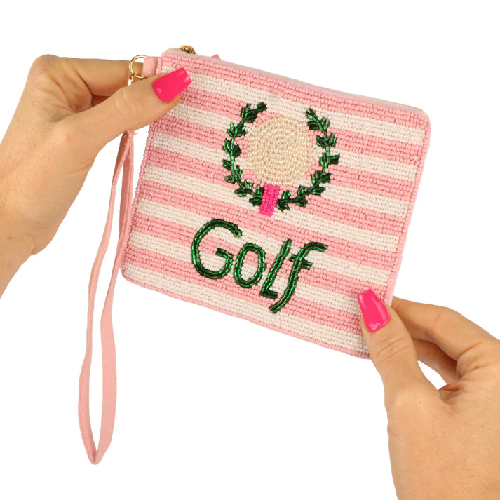 These golf Beaddie Wristlets may just be the cutest accessories of the season. Each one is hand sewn made from a decorative front of beads with a soft cotton back.