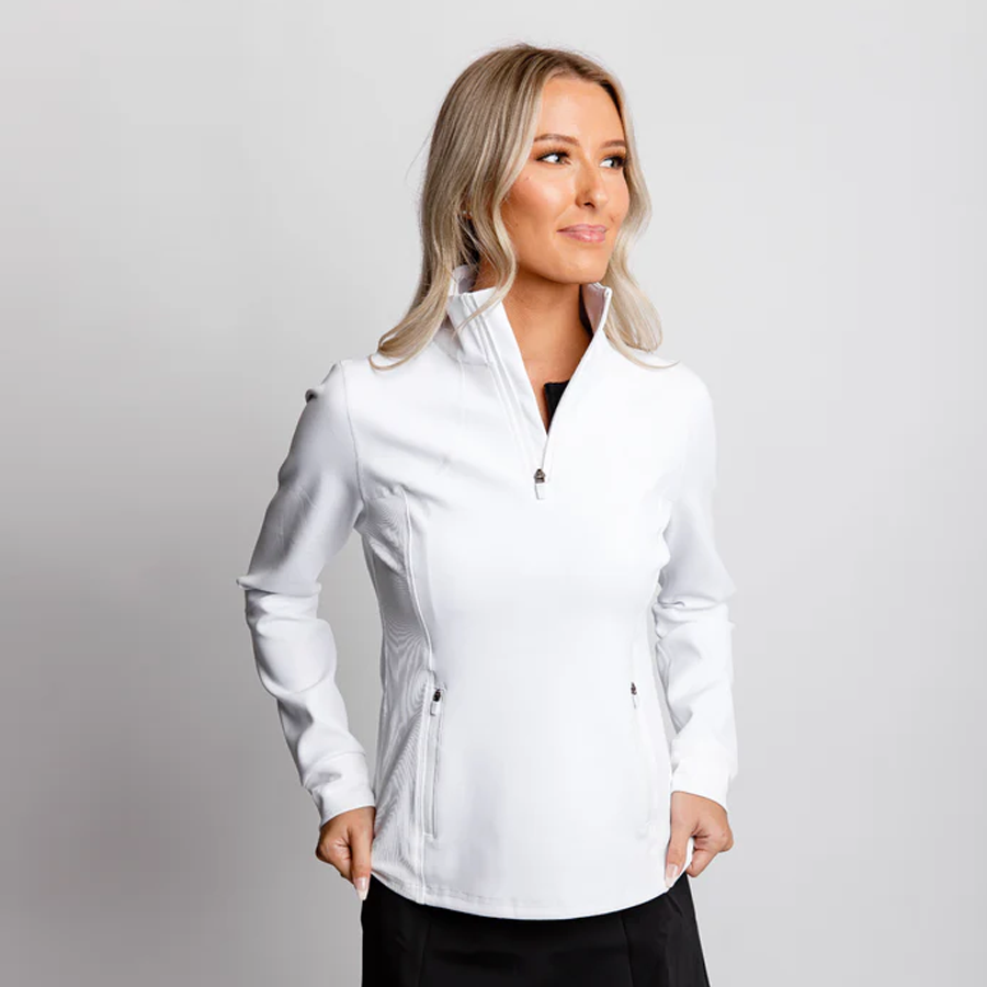 The Calliope Coeur pullover is lightweight layer that moves with you. Wear it on the course, to the gym or anywhere in between.