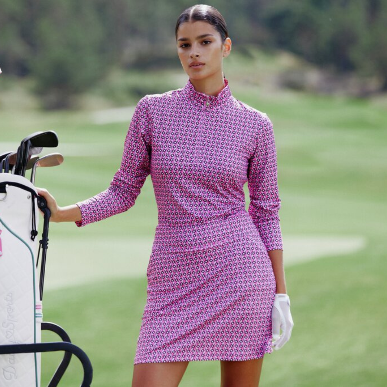 Effortless performance meets standout print. The Sheermotion Geometric Palm Tree Skort brings a fresh, modern energy to your golf wardrobe with a lightweight feel and breathable stretch that moves with you from first swing to last putt. Designed in Daily Sports’ signature Sheermotion fabric, this skort delivers all-day comfort with a smooth, flattering drape and a pull-on waistband that feels easy and secure. The geometric palm print adds just enough statement while still pairing seamlessly with your favorite solids.