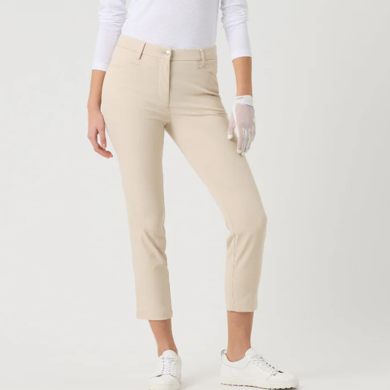 A polished essential designed for performance and everyday wear. The Lyric Straight Ankle Pants combine a tailored silhouette with lightweight stretch fabric, giving you a clean, structured look that moves with you. Built with a soft, stretch performance fabric, the Lyric Pants offer full freedom of movement while maintaining a sleek, tailored fit. The mid-rise waist and straight leg create a flattering, modern silhouette, while the ankle length keeps the look sharp and versatile. Designed to be worn on and off the course with ease.