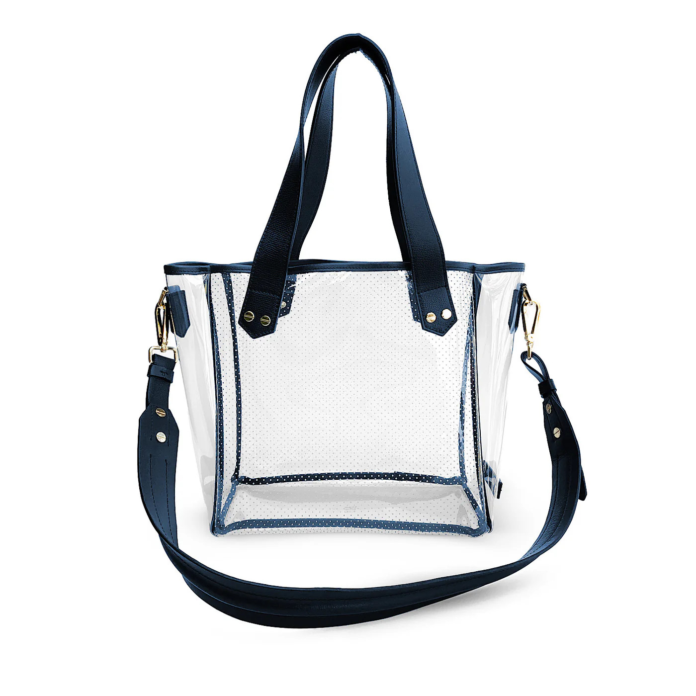 This FENIX clear bag started as a stadium approved bag and is now the go to “it” bag for pickleball, tennis, the beach, pool, boating, rainy days, errands, everything! Elevate your game day style with the ultimate stadium-approved bag —perfect for sporting events, boating, beach days, poolside lounging, travel, and more. Crafted from premium Italian leather with hand-painted edges, it features a breathable, thick PVC design that won’t sweat, warp, or lose its structure. Designed with custom French hardware and a luxe, detachable shoulder strap for effortless crossbody wear, this bag blends sophistication with function. Stay stylish and compliant wherever the day takes you!
