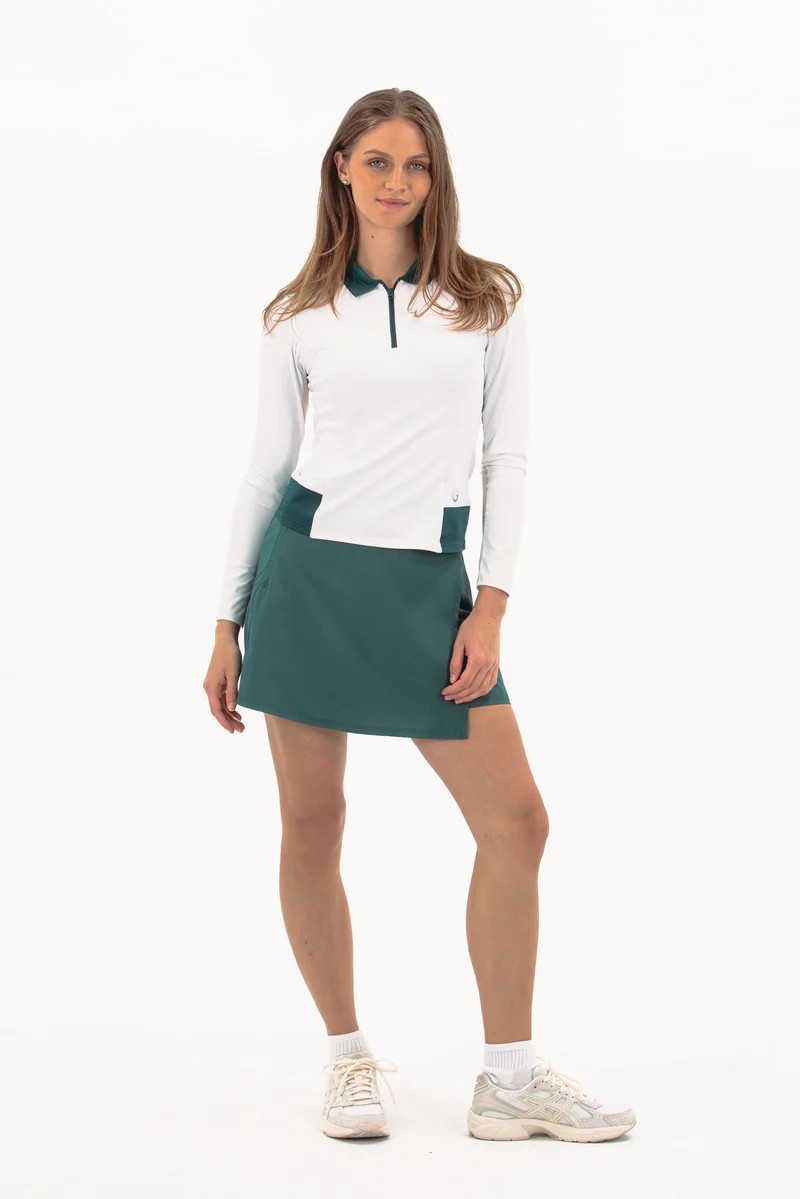 The ease of shorts with the polished appearance of a skirt. This is the one you reach for when you want it to feel easy but still look sharp. Clean, unfussy, and quietly elevated. It does exactly what you need it to do, without asking for attention. Built with lightweight fabric and a relaxed shape, it offers breathability and comfort throughout the day. The front keeps a clean, tailored look, while subtle stretch and structure make it easy to wear from the course to everything after.