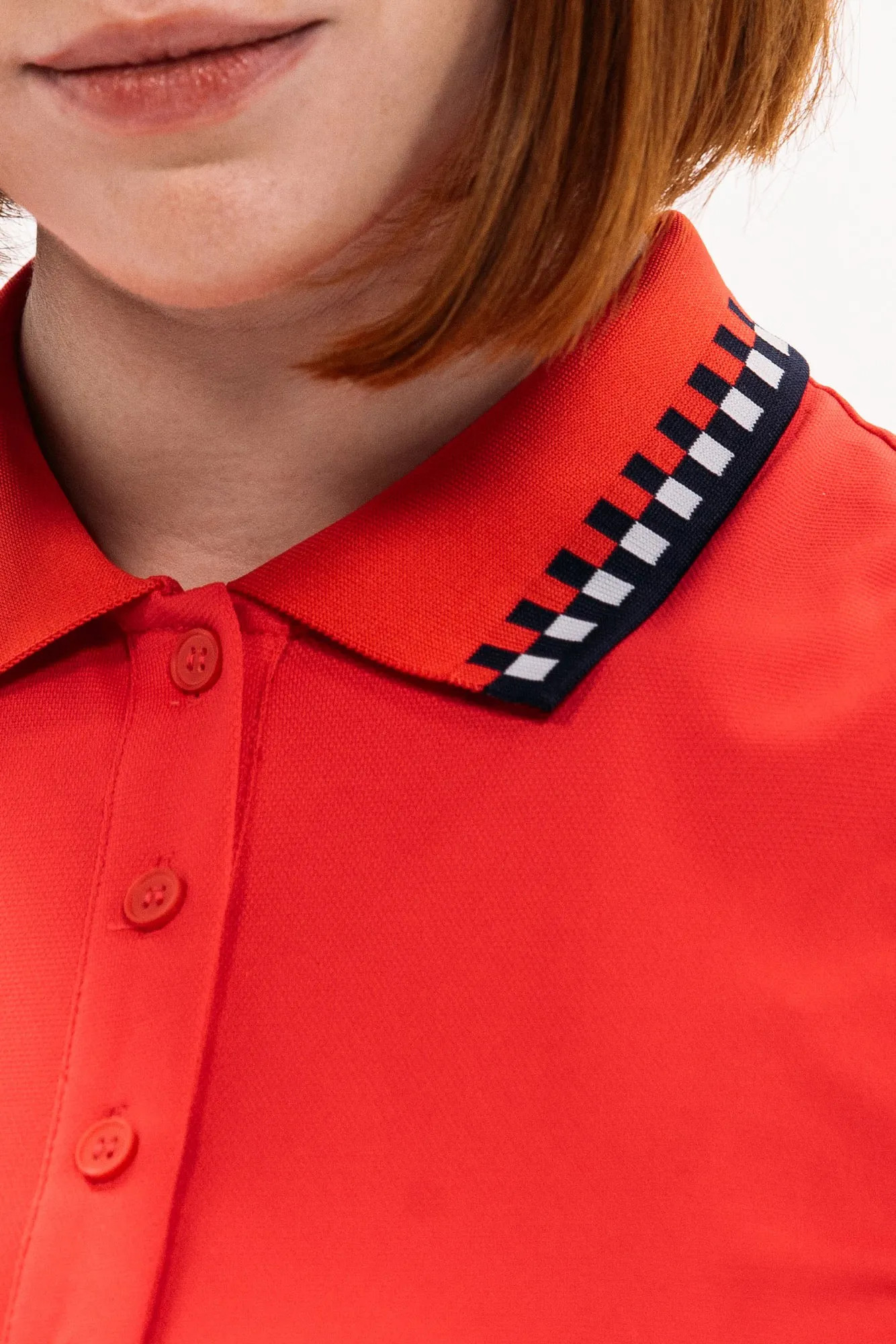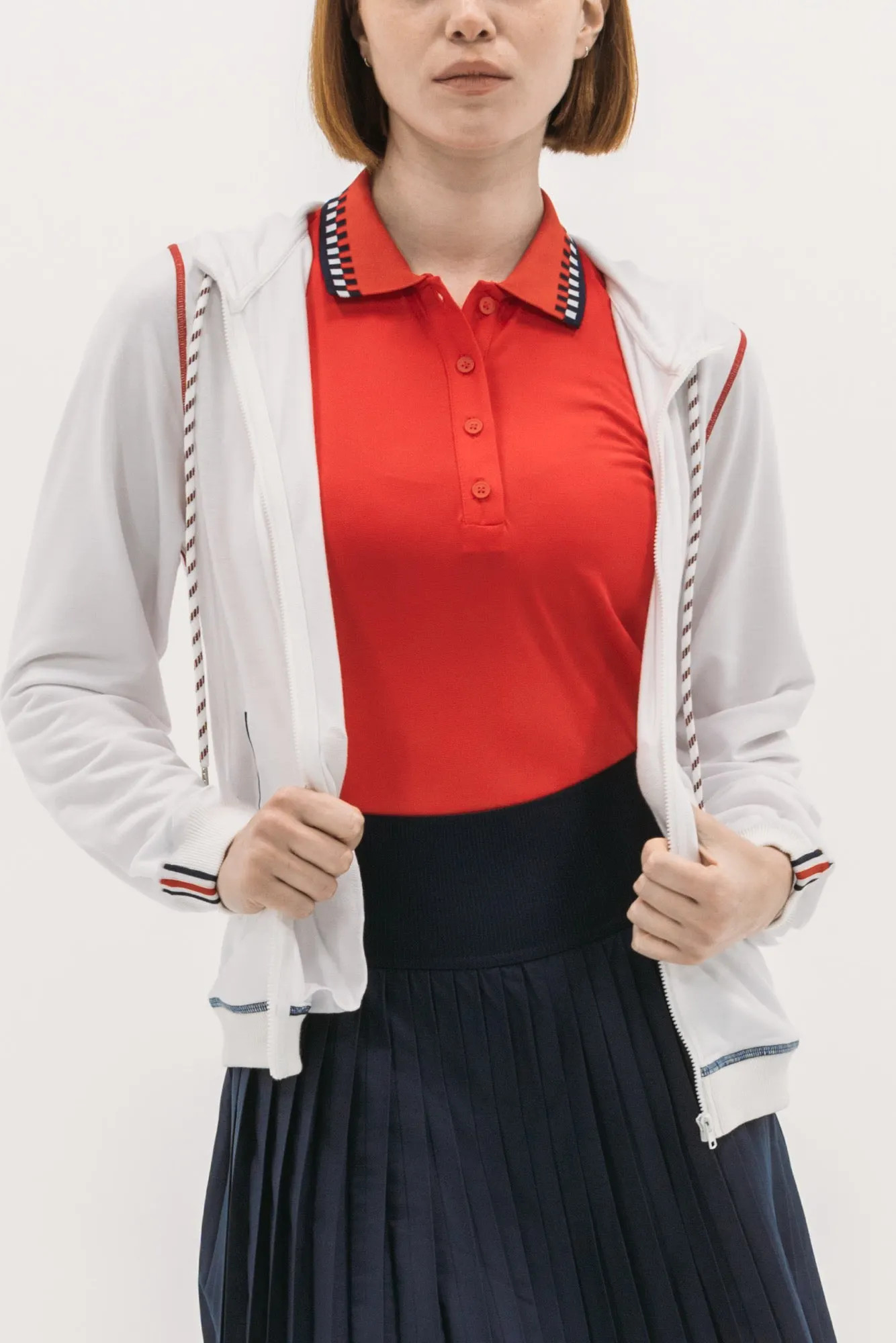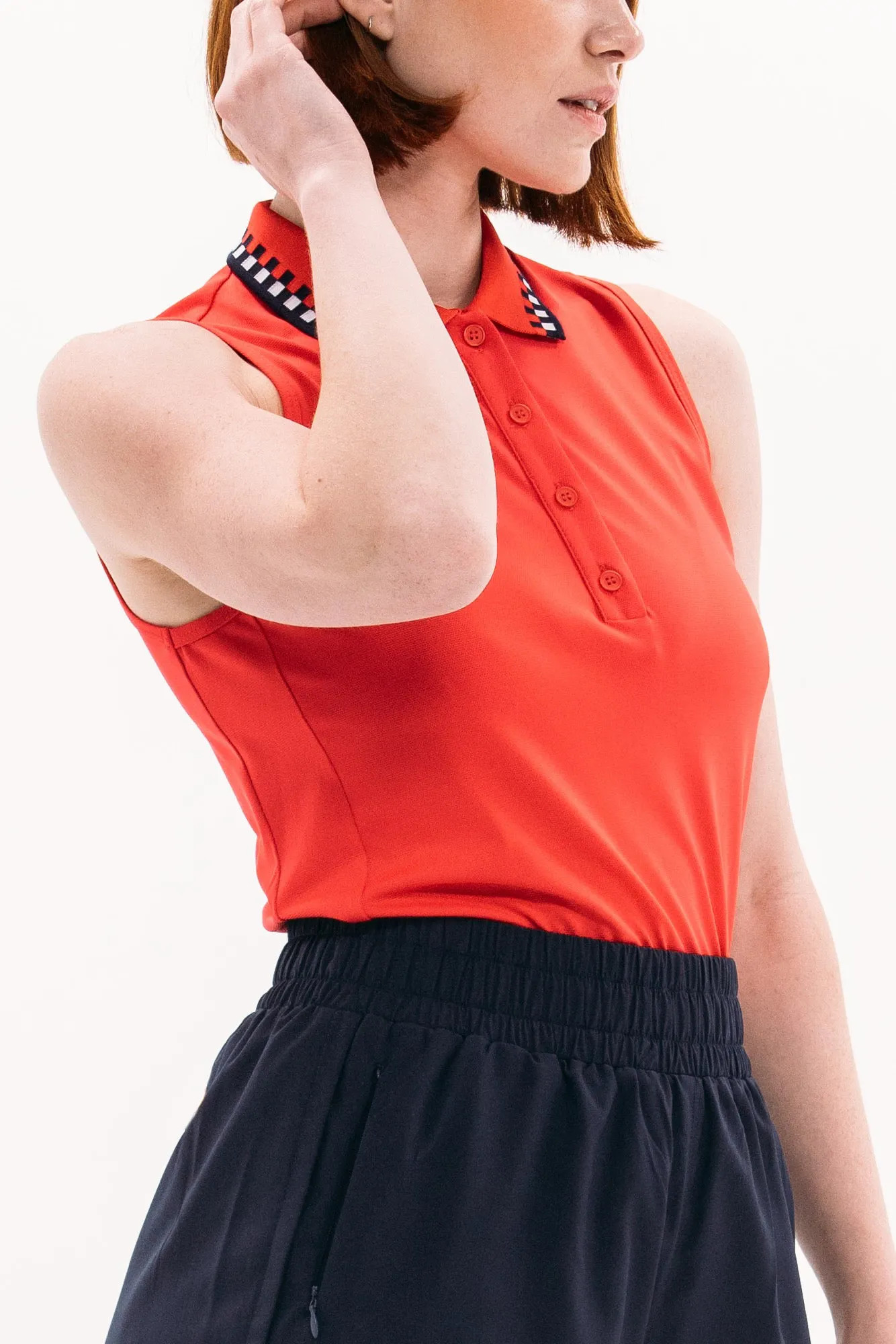 The Foray Golf sleeveless pique polo is made from gorgeous "Nantucket-red" technical Italian pique. With a classic button front placket and side panel seam construction that flatters all body shapes, she's reinvented to fit today's sport chic guidelines. Topped with a cool, engineered knit collar, this piece is easy to pair back to every navy, white or grey piece already in your rotation.
