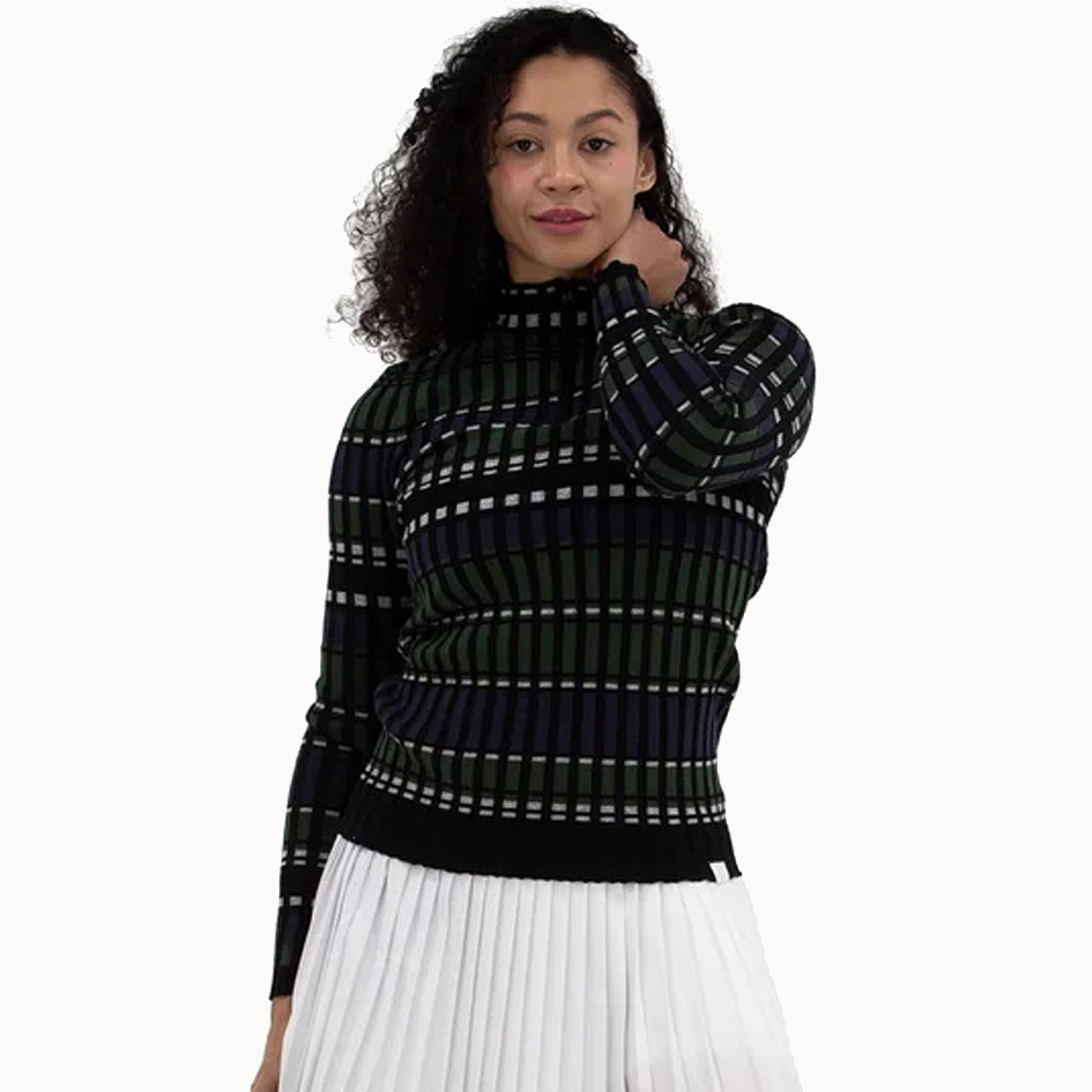 - Luxurious technical textured knit with stretch and wicking