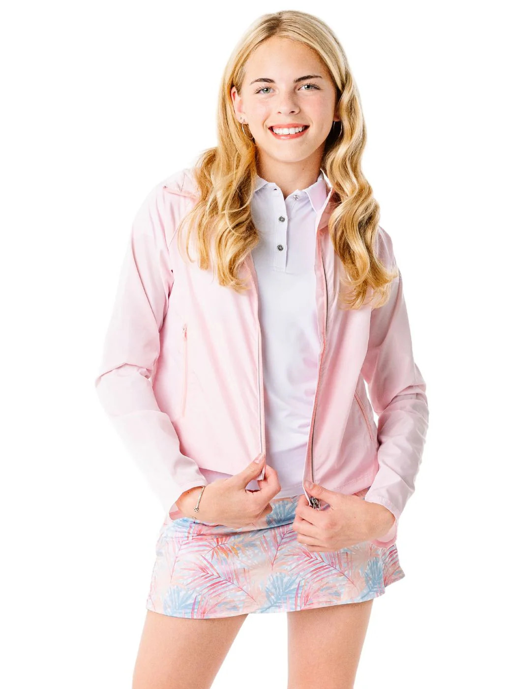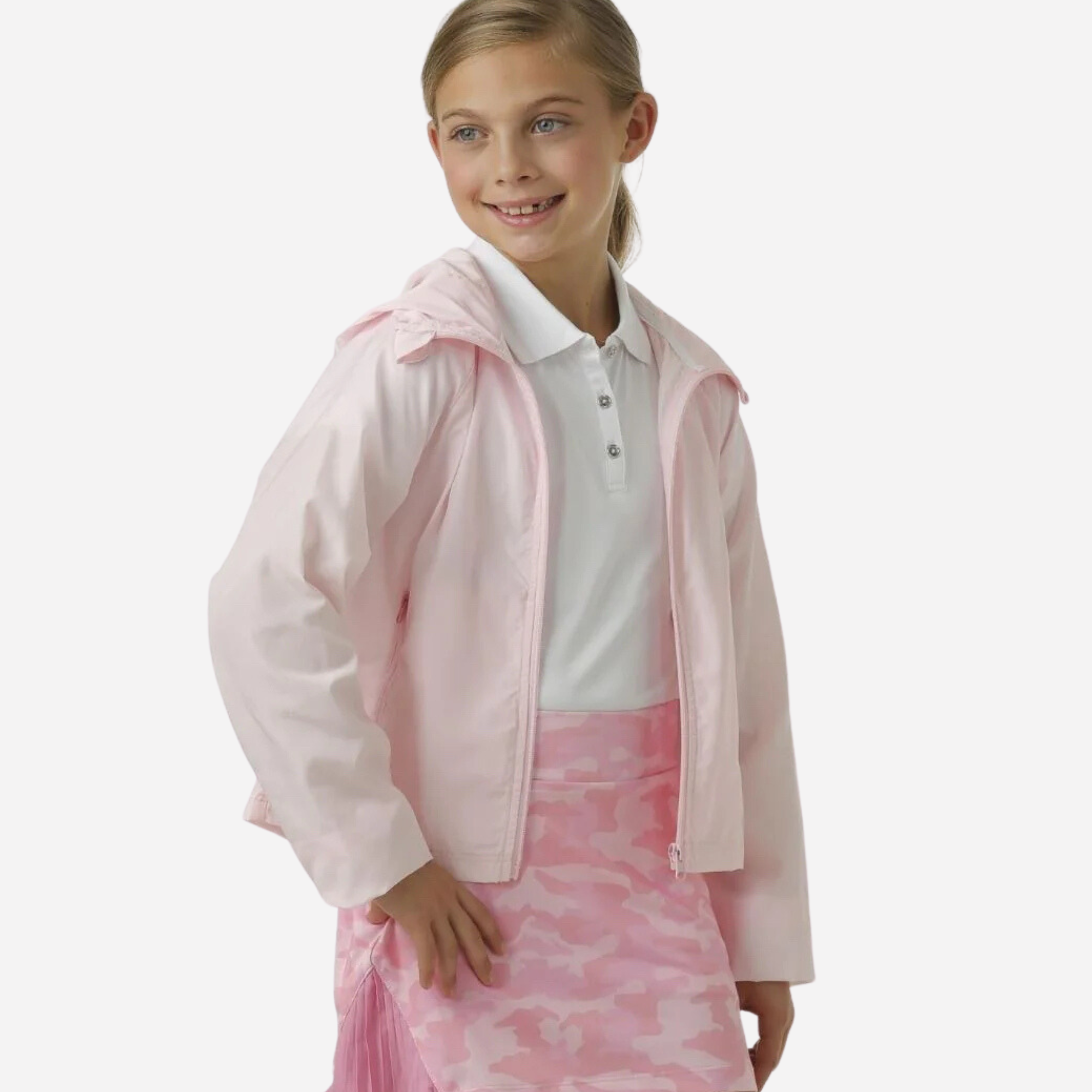 Weather any situation in the Garb Girls Sutton rain jacket. The durable material is lightweight and easy to pack in any golf bag. The Sutton is full zip, crop-length jacket, with zippered pockets and a hood.