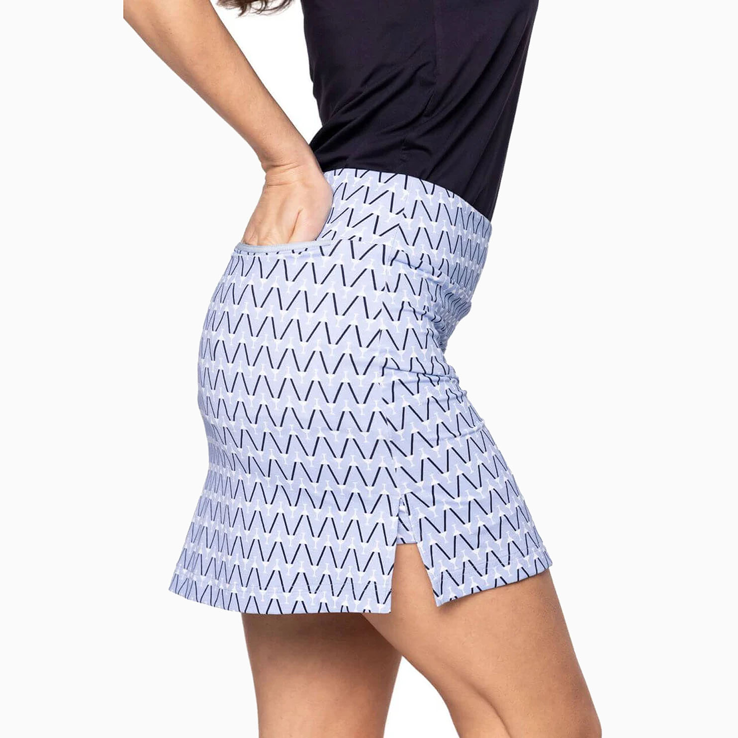 The Golftini Nauti & Nice Skort, is pull‑on skort that’s all about cool comfort and playful style. Decked out in a navy and seersucker blue martini print, it's lightweight, breathable, and perfect for staying fresh whether you're hitting the links or hanging with friends. Tailored for ease and elegance, it keeps you looking good and moving freely.