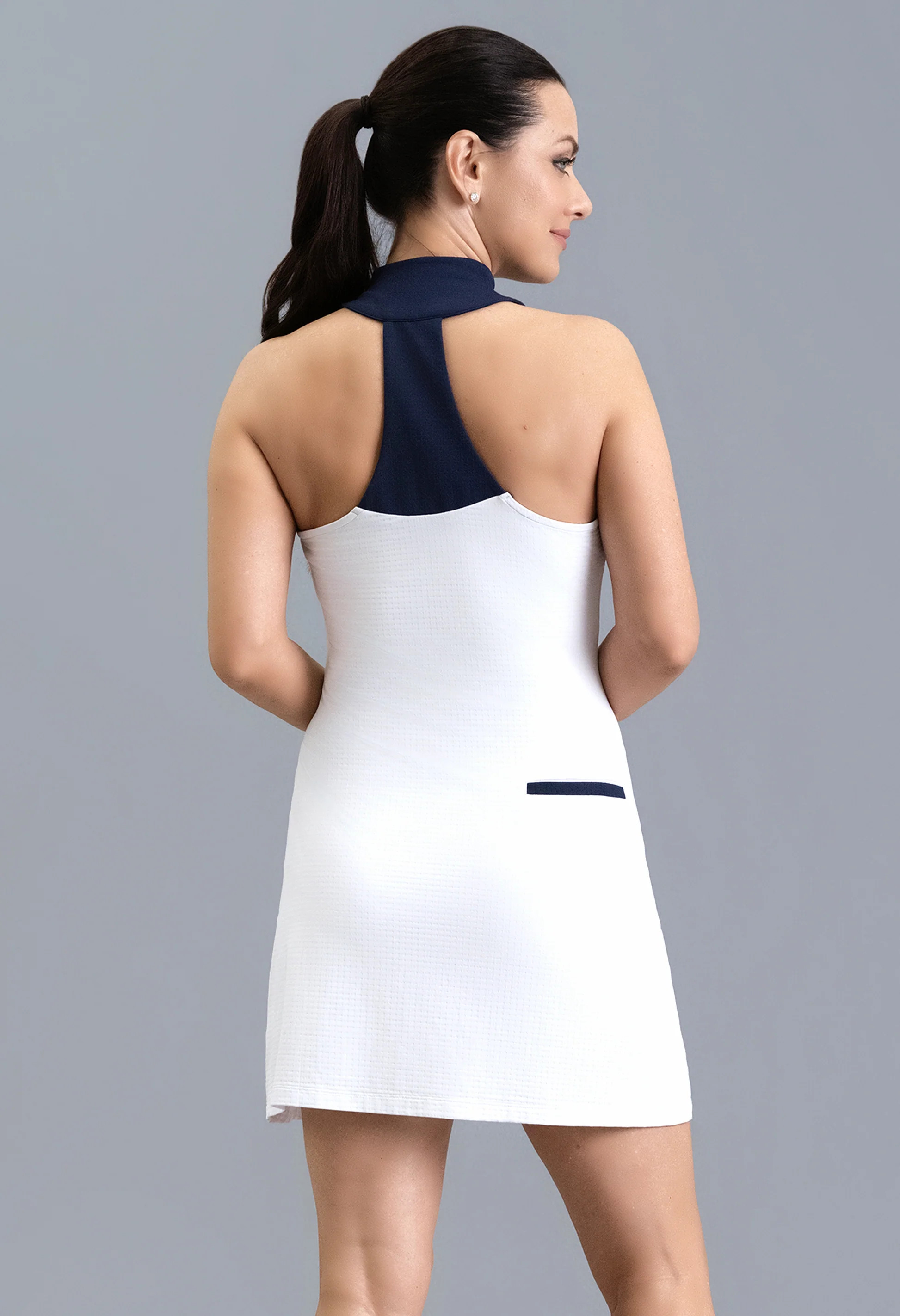 Feel balanced in motion and cool in spirit. This color block tennis dress brings quiet energy to every point and every step off court. Its flattering silhouette and bold yet refined contrast create a look that feels intentional and natural for warm-weather play and relaxed brunch plans alike. Crafted from IBKUL’s Iceƒil® technology, this dress actively cools as you go while UPF 50+ sun protection helps guard your skin in bright conditions. The quick-dry, moisture-wicking fabrication stays light on the body and the antimicrobial finish helps you feel fresh through long days in the sun.