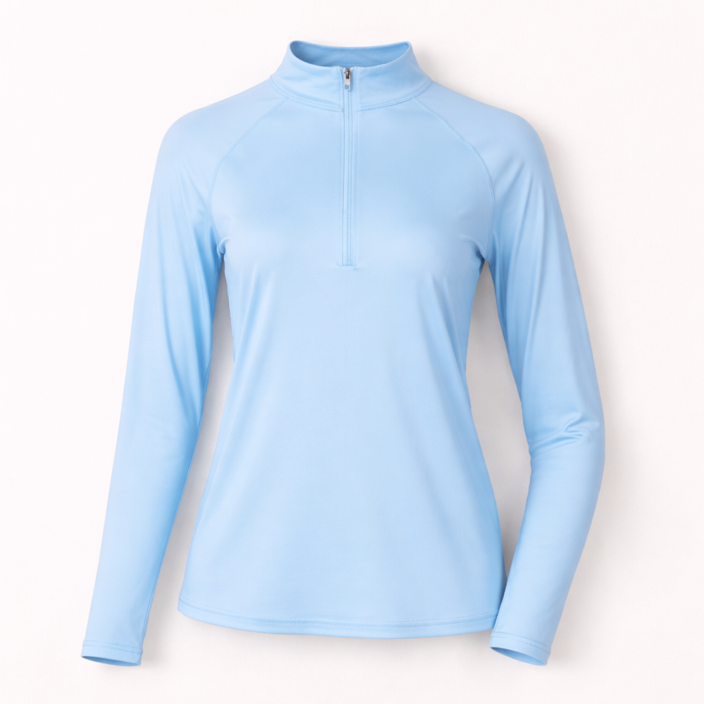 This mock feels smooth, light, and comfortable without feeling tight around the neck. The fabric stays cool on your skin, even in the sun, and moves easily when you swing or walk. It gives you coverage where you want it, without feeling heavy or restrictive. Easy to wear for a full round and still comfortable long after.