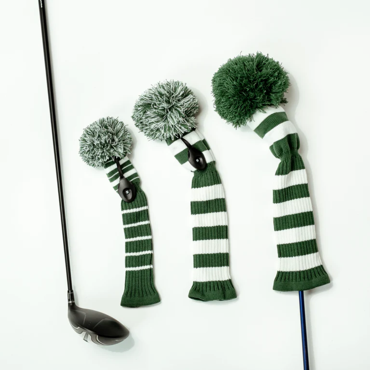 Just4Golf Green/White Stripe Knit Headcovers (Driver, Wood, Hybrid)