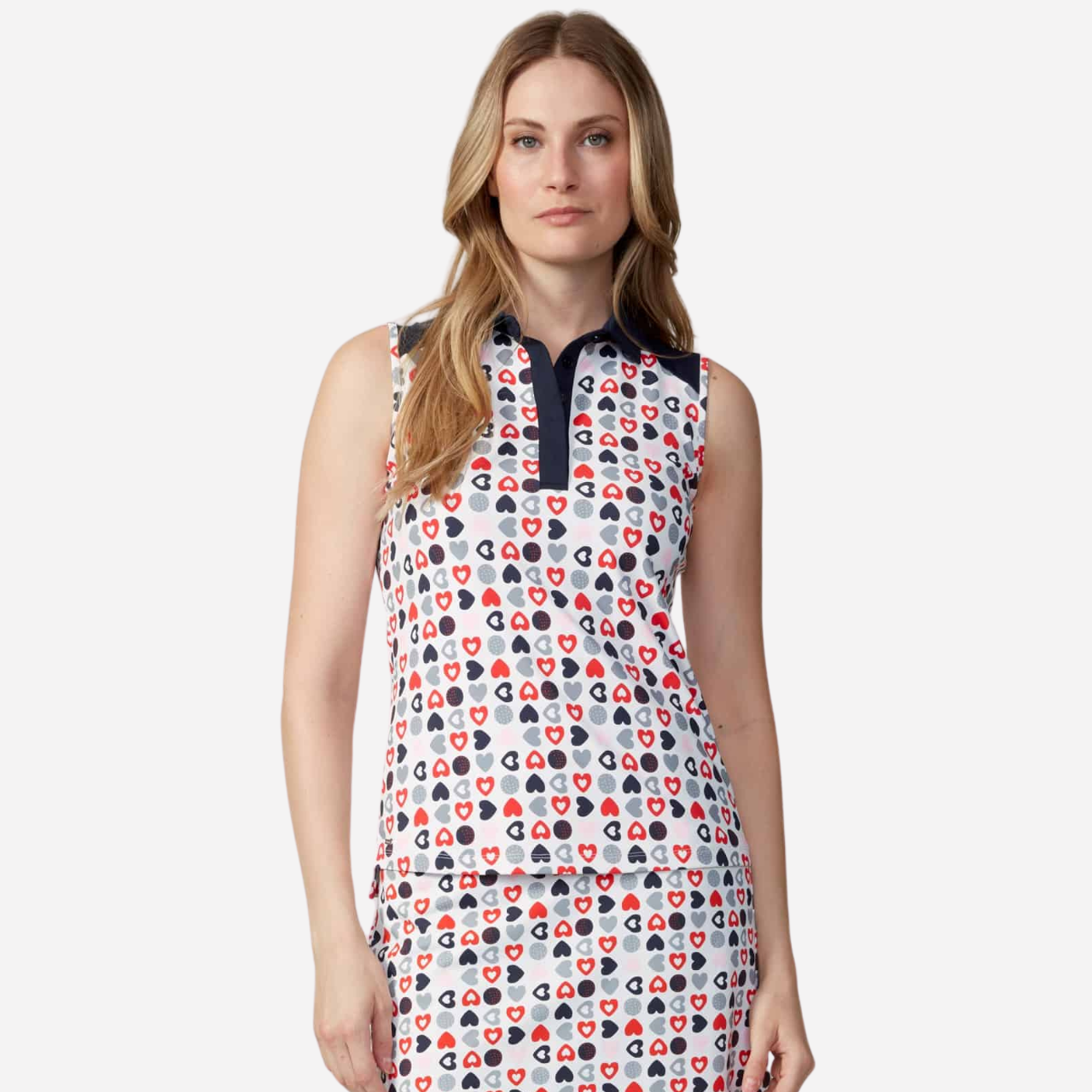 Swing Control Navy Hearts Sleeveless Polo | Velocity Fabric