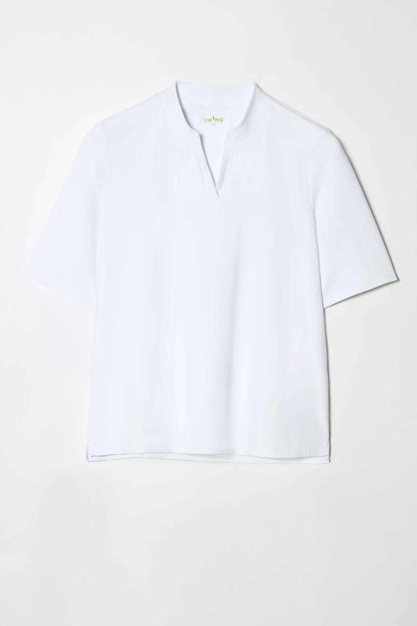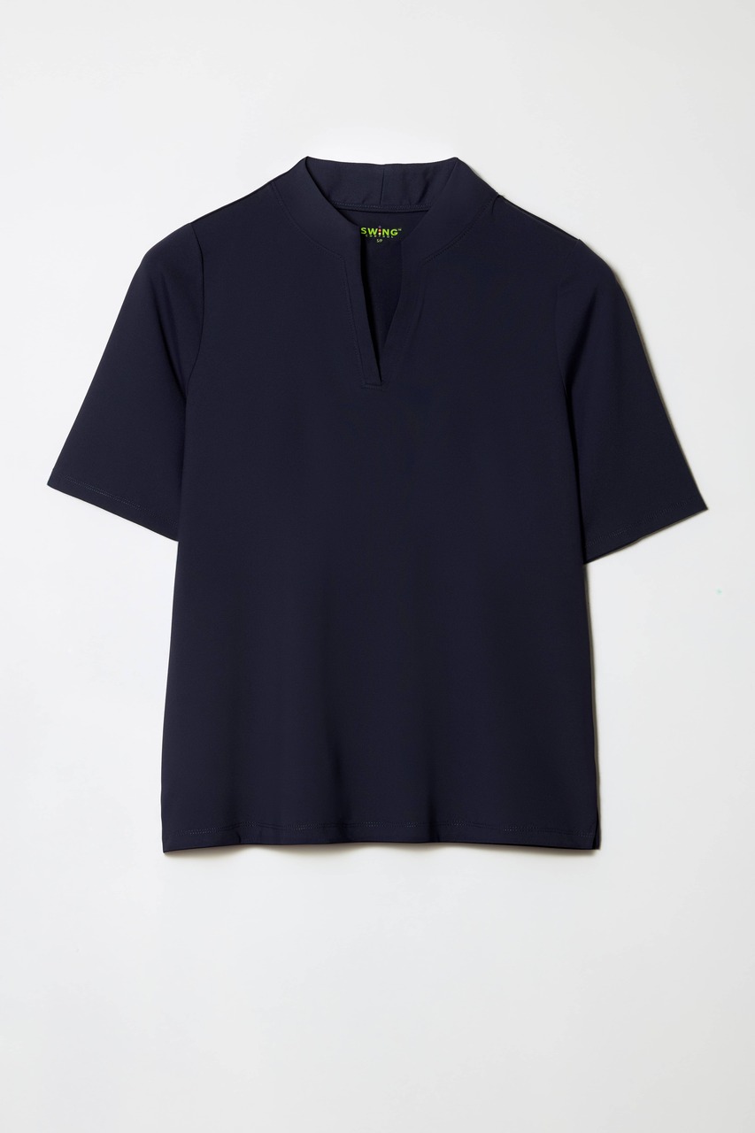 Swing Control Half Sleeve V-Neck Top | Mandarin Collar