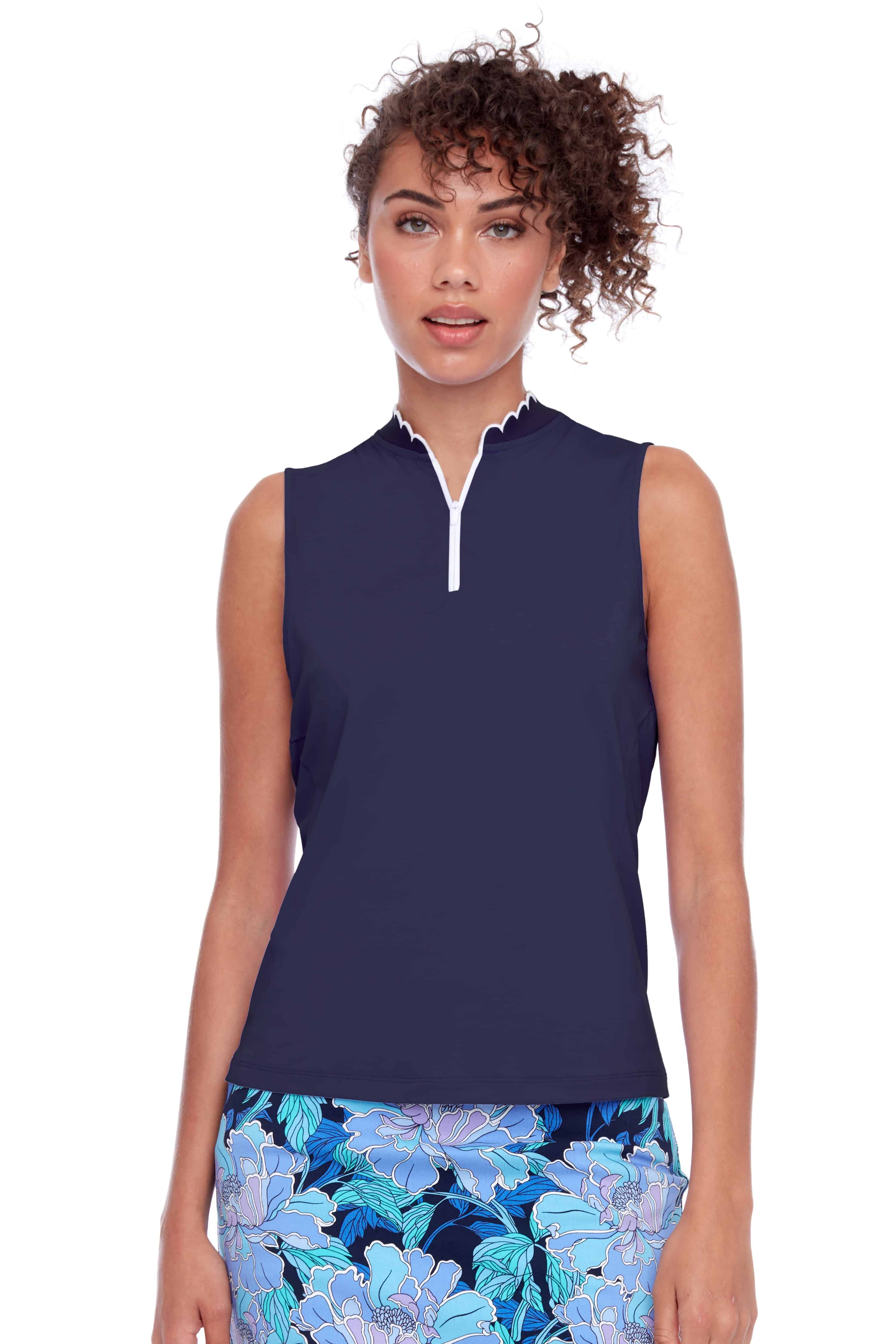 Add an elegant edge to your on-course look with this flirty sleeveless style. Scalloped details soften the streamlined fit with a feminine touch, while contrast color banding adds a sporty finish. Updated in a fresh mix of vibrant hues, it’s easy to mix and match for standout looks all season long.